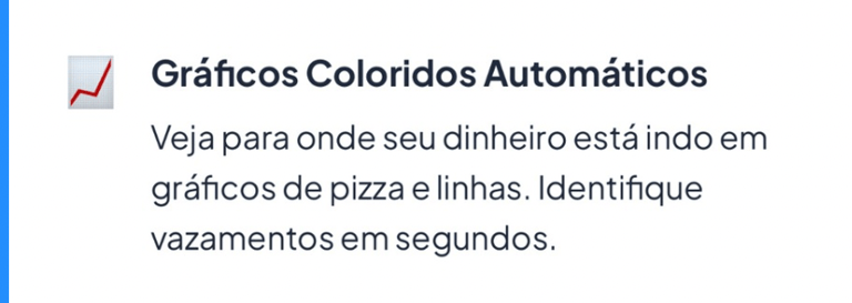 Descubra exatamente para onde está indo cada centavo, identifique vazamentos de dinheiro e tome decisões que multiplicam seus lucros. Tudo automatizado, visual e sem complicação.